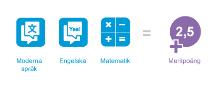 Oavsett vilken utbildning du söker kan du få meritpoäng för vissa kurser i moderna språk (här ingår B- och C-språk), engelska och matematik. För att få meritpoäng krävs att du har Godkänt eller högre betyg i kursen.